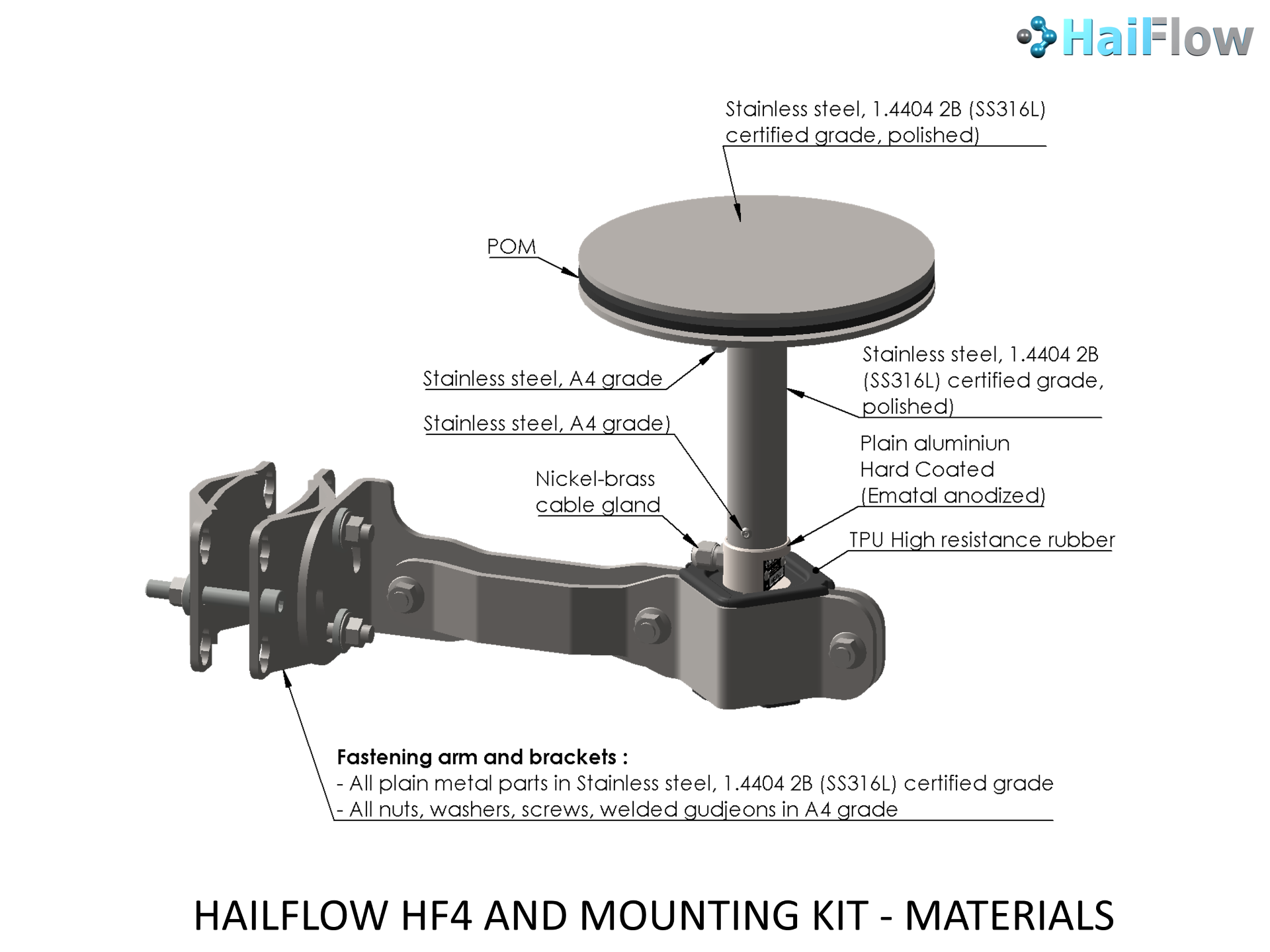 HailFlow HF4 is an acoustic impact instrument dedicated to the observation of hail and solid hydrometeors. It detects each hailstone's kinetic energy and classifies stones into 15 size classes from about 0.5 to 8 cm, with no moving parts and extremely robust mechanics.